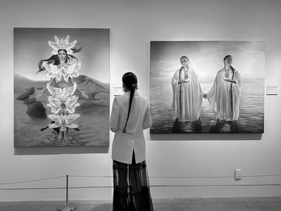 cultural healing, and self-reclamation. Blending oil and airbrush painting, I engage with a duality: oil connects my practice to classical and religious traditions, while airbrush serves as a personal tool of remembrance.